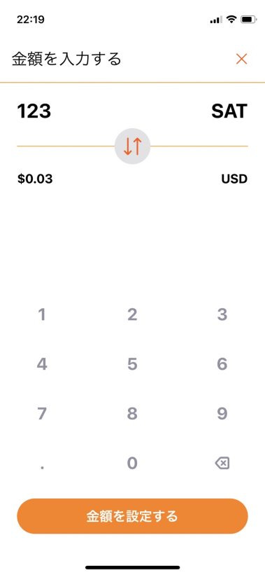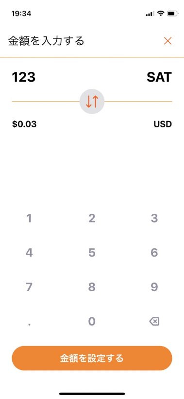 今回は 123 SAT に設定しました(金額指定後、「金額を設定する」をタップ)。