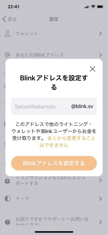 (※なお、一度設定した Blink アドレスは、あとから変更することができません!)
