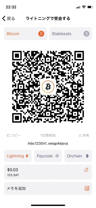 satoshi (sats) を受け取ってみる
