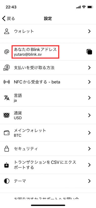 Blink アドレスとは、たとえば僕で言う【yutaro@blink.sv】のような Lightning アドレスのことです(メールアドレスのようで、メールアドレスではありません)。