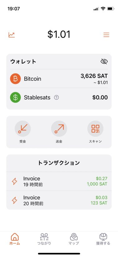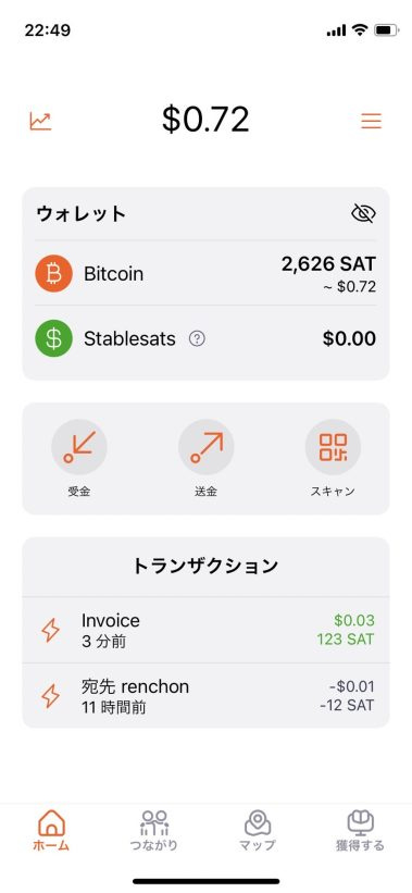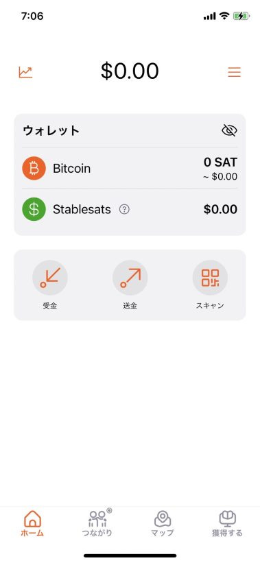 こちらが Blink Wallet アプリのホーム画面です。
