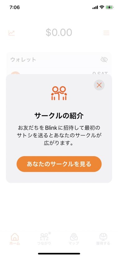 あなたのサークル詳細は、Blink Wallet アプリのトップ画面下にある「つながり」から見ることができます。