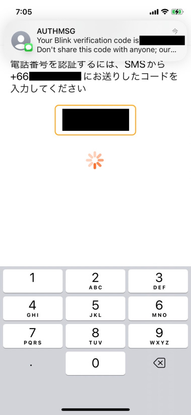 あなたの電話番号宛に SMS でアクセスコードが送られてきますので、それをコピーペーストまたは入力します。