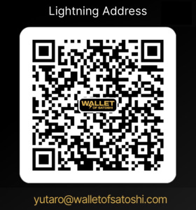 – Lightning address : yutaro@walletofsatoshi.com
