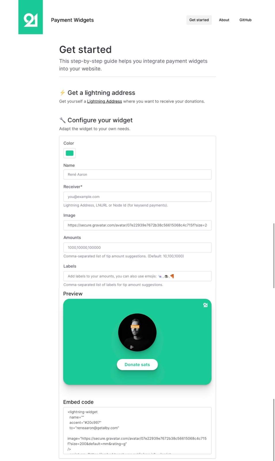ビットコインの Lightning Wallet と併用することで、ブログやウェブサイトに美しい Lightning Payment(ライトニング・ペイメント)用の受金/寄付フォームを埋め込むことができる専用ウィジェットです。