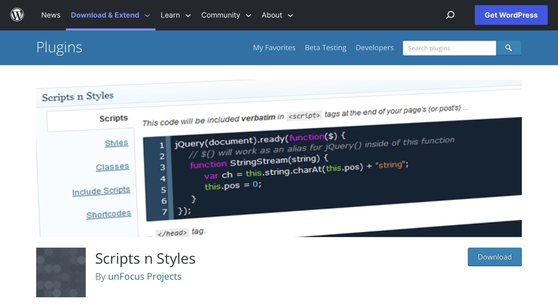 なので無料プラグインの“Scripts n styles”をダウンロードして対応しましょう。