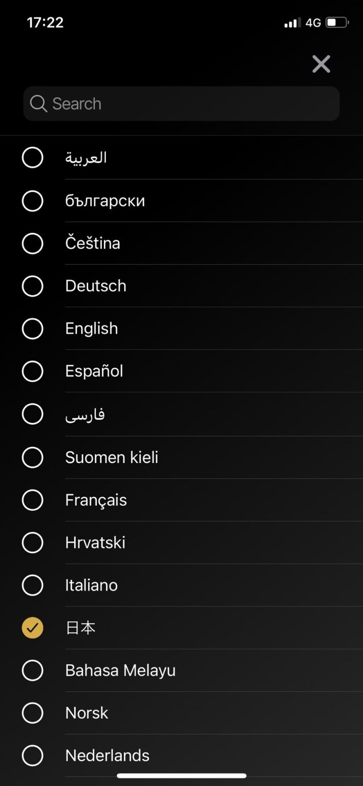 写真のように「日本語」選択すれば、自動で日本語表記に切り替わります。