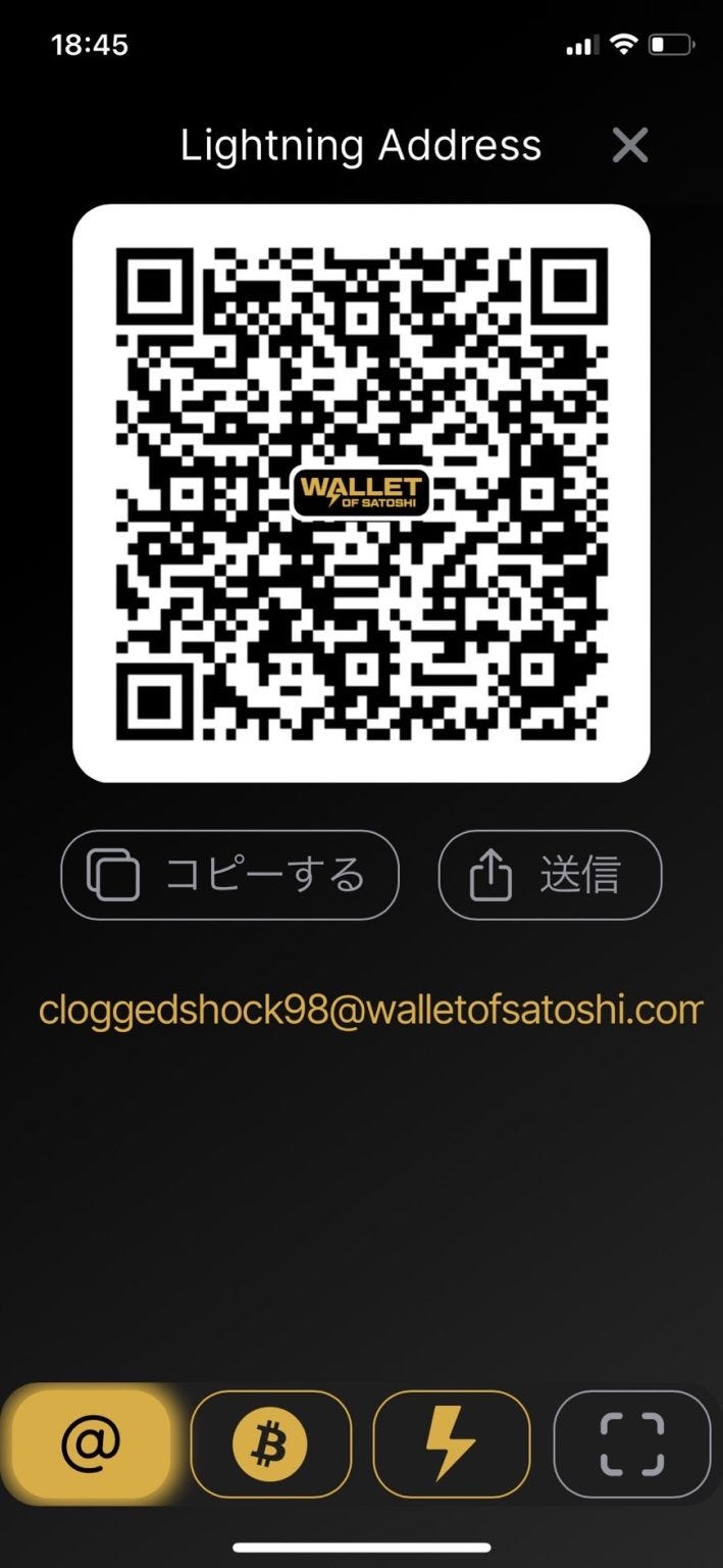 – Lightning address : yutaro@walletofsatoshi.com
